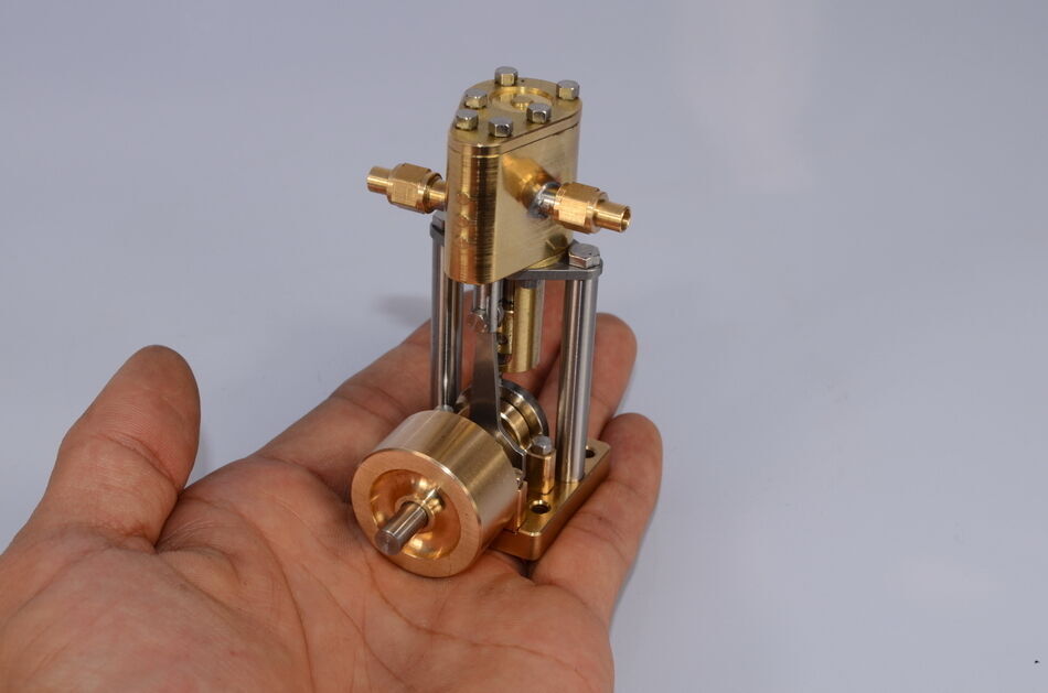 Its structure is quite compact, made of metal carefully made of brass and stainless steel. Base increase the performance of two stainless steel bearings enhanced engine.Use stainless steel hex screws, engine seems more retro.